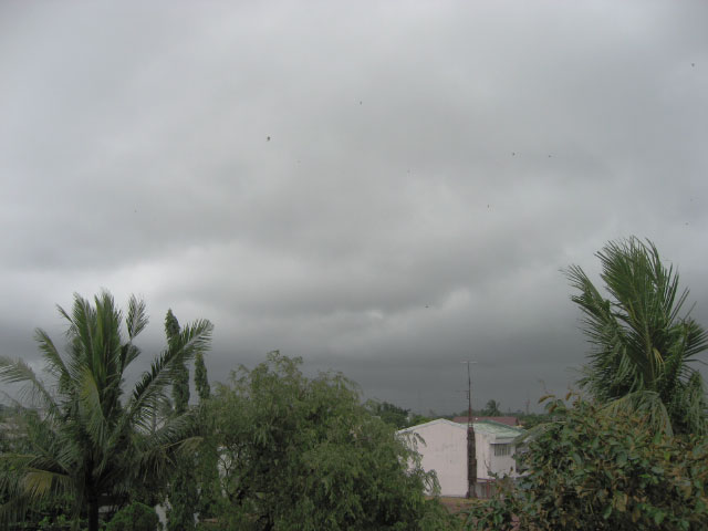 L-R, T-B: 1. Incoming typhoon eyewall. 2. Receeding eye of the storm. 3. Birds (black specs) flying every which way during the eye. 4. Felled talahib and mango tree at the lot behind our home. 5. Broken banana trees at a different lot. 6. The second part of the typhoon starting to lash.
