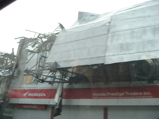 Traffic was bad along EDSA northbound due to the spectacular collapse of a billboard structure onto the Magallanes interchange. A passenger bus was caught in the steel carcass. Along McKinley Ave, there were tens of uprooted acacia trees. The humongous billboard structure at Ortigas Ave. corner C-5 was another casualty, but fortunately it collapsed into the empty lot beside it. I was suprised that the roofs at Tiendesitas remained intact.