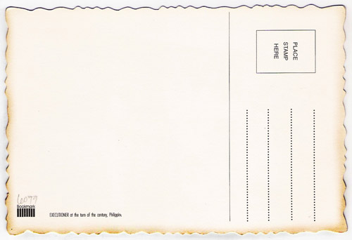 Read up about the origins of this meme from Markku and Juned. Apparently, this is a real postcard but depicting a mock garrote scene. Hehehe. To continue this meme, I tag rikitikitik, Abe (mukhang wala pang nagta-tag sa iyo), Ramil, missyosigirl, and Sasha. Most everyone else have been tagged already. Instructions below.